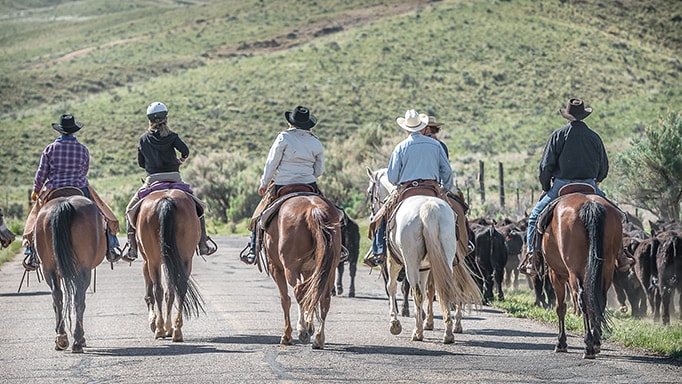 *Horseback rides through wild, cinematic landscapes.